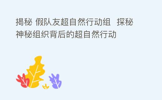 揭秘 假队友超自然行动组 探秘神秘组织背后的超自然行动