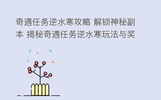 奇遇任务逆水寒攻略 解锁神秘副本 揭秘奇遇任务逆水寒玩法与奖励