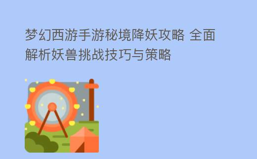 梦幻西游手游秘境降妖攻略主要包括了解制度、选择角色和装备、掌握战斗技巧以及合理分配任务等方面。通过以上攻略,相信玩家们在游戏中能够轻松降妖,享受游戏乐趣。