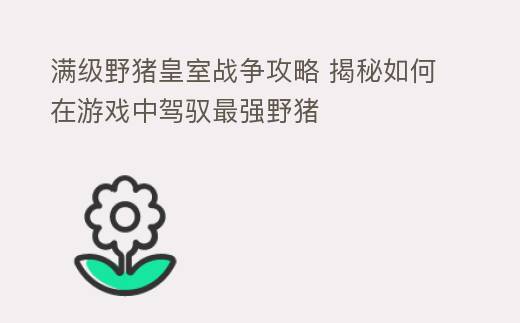 文章标题:满级野猪皇室战争:攻略全解析,轻松征服战场