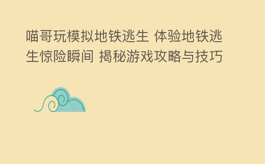 前言:随着手机游戏的普及,越来越多的玩家开始追求刺激和趣味性。喵哥玩模拟地铁逃生作为一款创造的逃生游戏,凭借其特殊的玩法和紧张刺激的体验,吸引了大量玩家的关注。我们将详细解析喵哥玩模拟地铁逃生的玩法和解决技巧,帮助玩家更好地享受游戏乐趣。