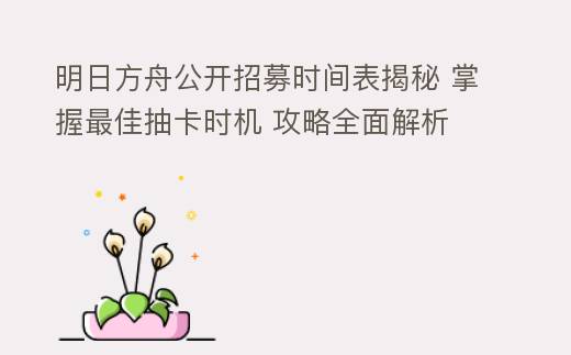 在《明日方舟》这款策略塔防游戏中,公开招募是玩家获取新干员的重要途径。掌握公开招募的时刻表,对于玩家来说至关重要。本文将详细介绍《明日方舟》公开招募的时刻表,帮助玩家把握最佳招募时机,打造最强干员阵容。