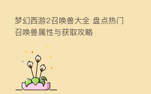 在《梦幻西游2》中,召唤兽是玩家们不可或缺的伙伴。通过合理选择、培养和搭配召唤兽,玩家可以在游戏中取得更好的成绩。了解召唤兽的常见难题及解决办法,有助于玩家更好地掌握召唤兽的玩法。